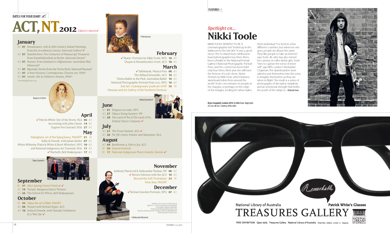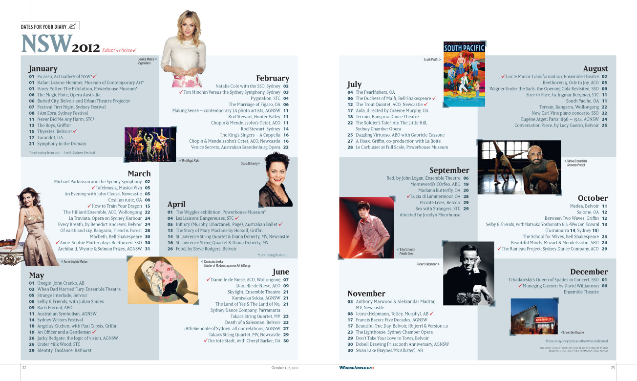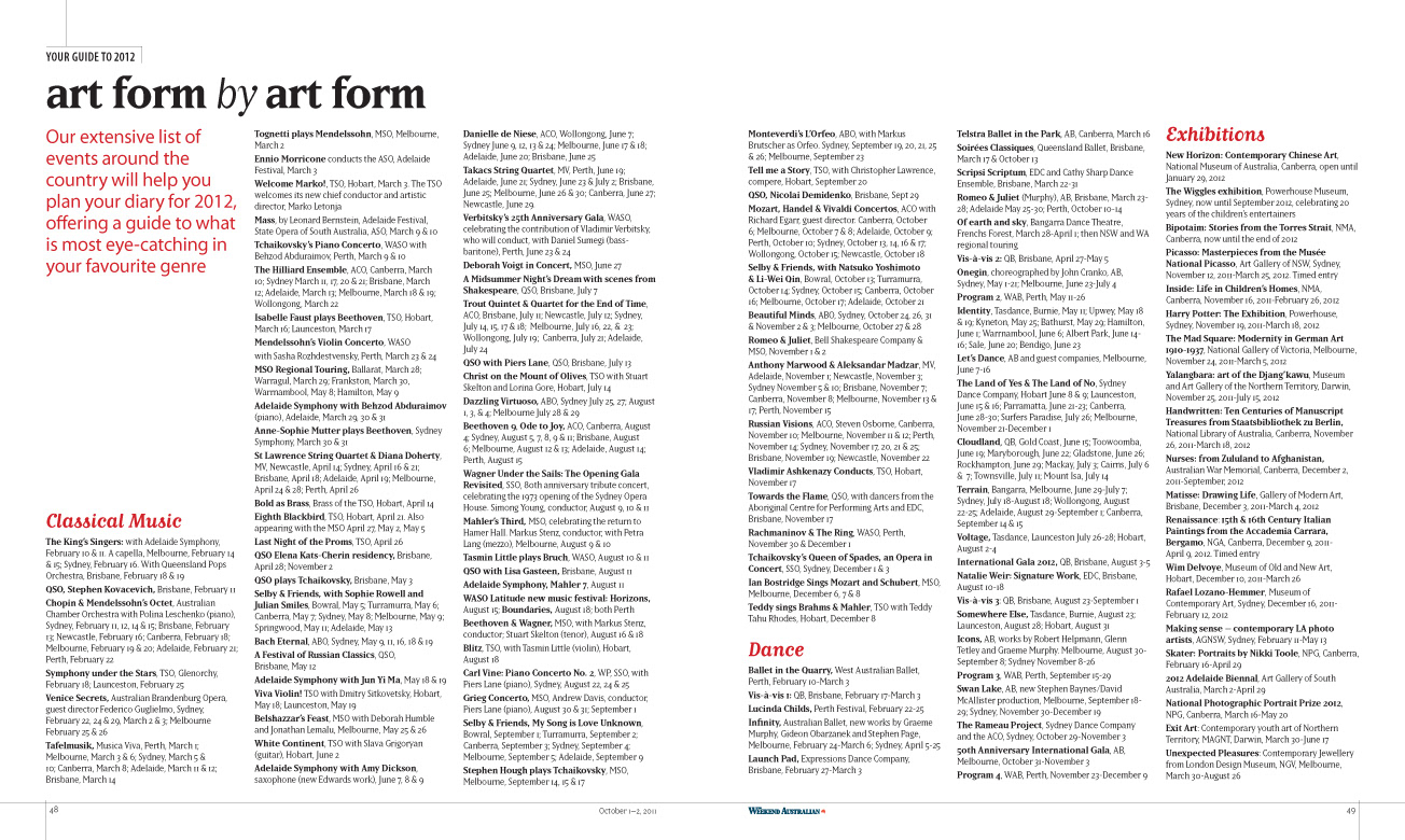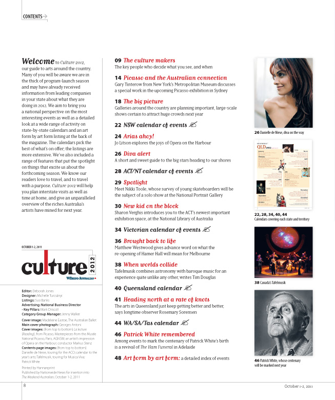 Client: The Australian Design & finished art: Michelle Turcsányi Project: Culture 2012, 52pp colour magazine, National arts & entertainment guide