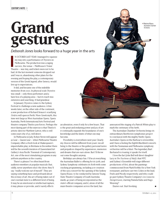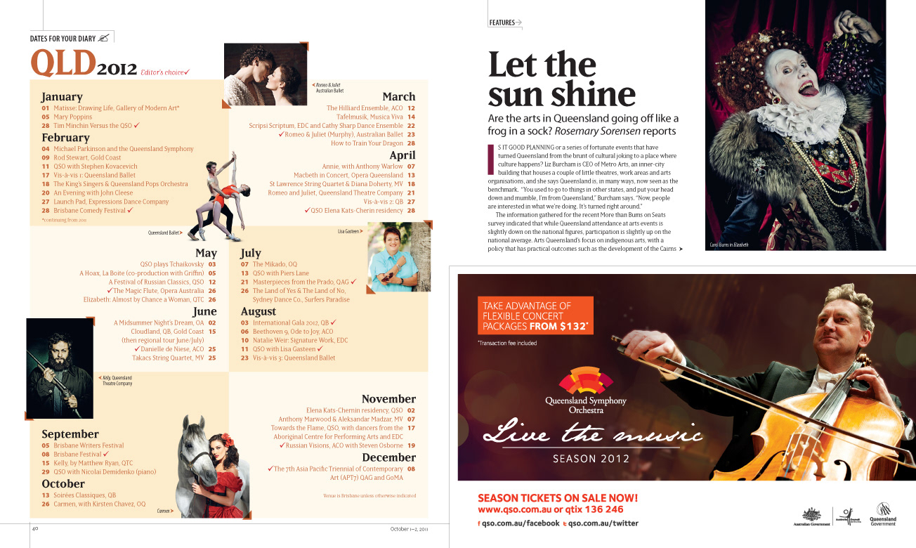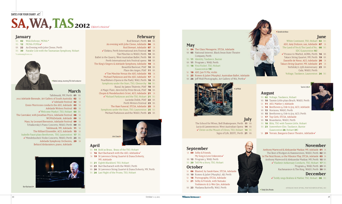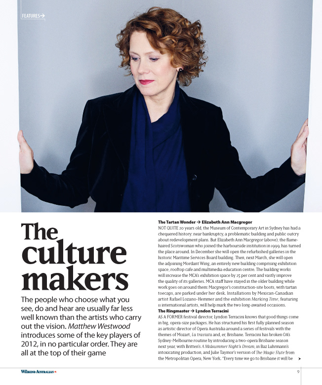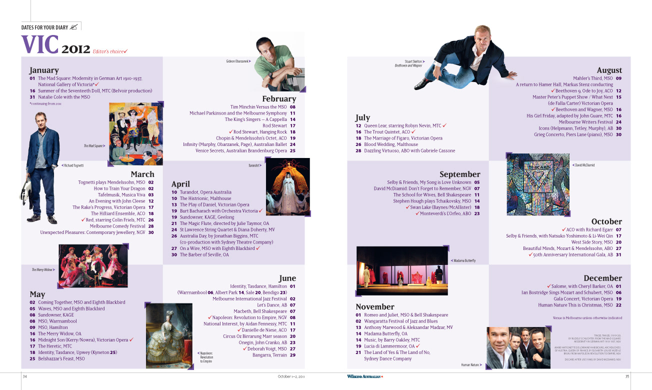 Client: The Australian Design & finished art: Michelle Turcsányi Project: Culture 2012, 52pp colour magazine, National arts & entertainment guide